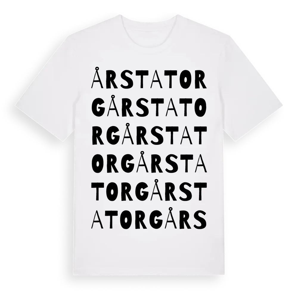 Årsta Torg ordlek t-shirt är inspirerad av Årsta Torg i Uppsala län, Sverige. Tröjan är designad för dig som har en speciell koppling till platsen – oavsett om du bor här, har rötterna här eller bara älskar Årsta Torg.