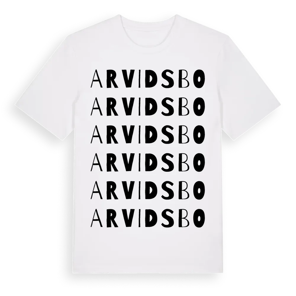 Arvidsbo ordlek t-shirt är inspirerad av byn Arvidsbo i Uppsala län, Sverige. Tröjan är designad för dig som har en speciell koppling till platsen – oavsett om du bor här, har rötterna här eller bara älskar Arvidsbo.