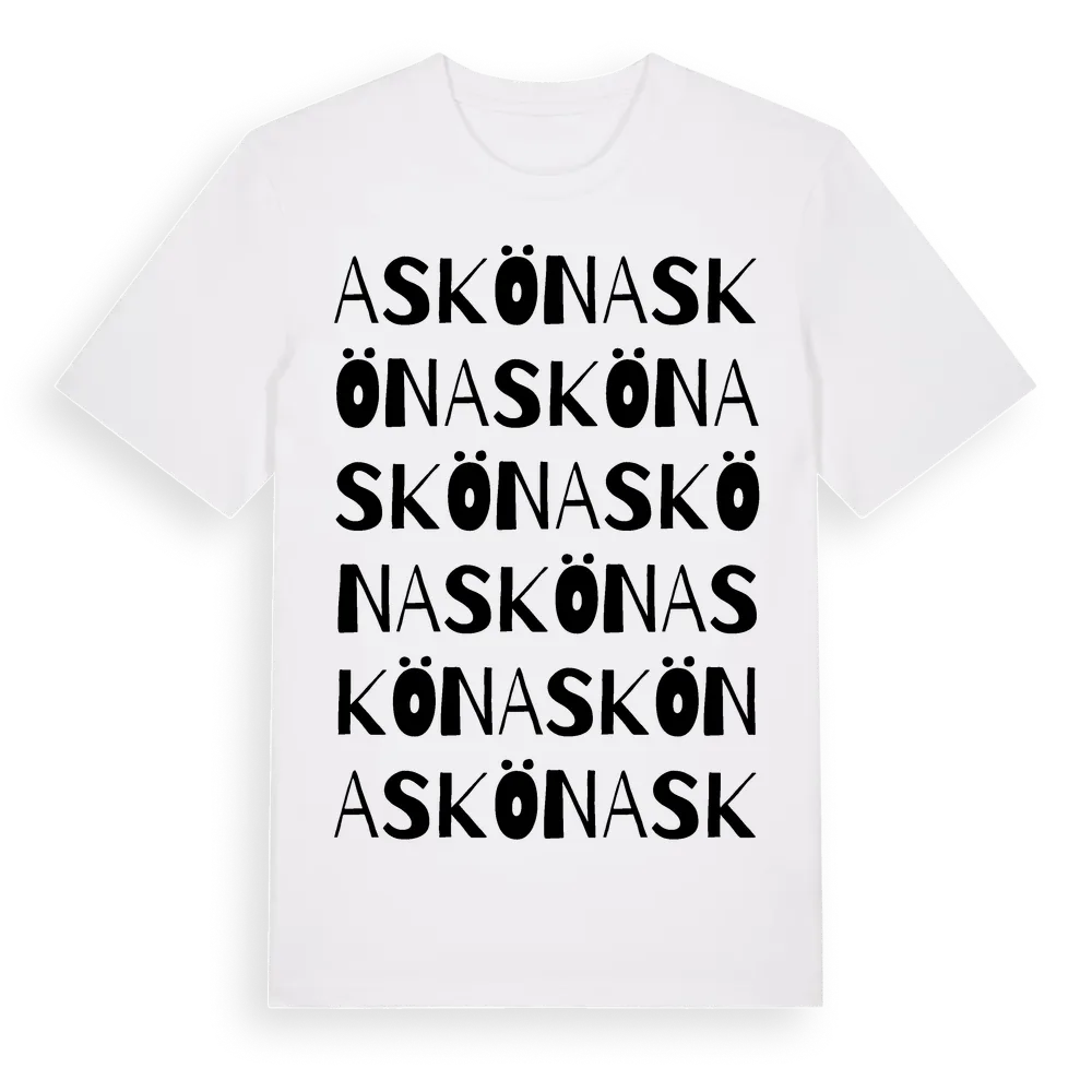 Askön ordlek t-shirt är inspirerad av byn Askön i Uppsala län, Sverige. Tröjan är designad för dig som har en speciell koppling till platsen – oavsett om du bor här, har rötterna här eller bara älskar Askön.