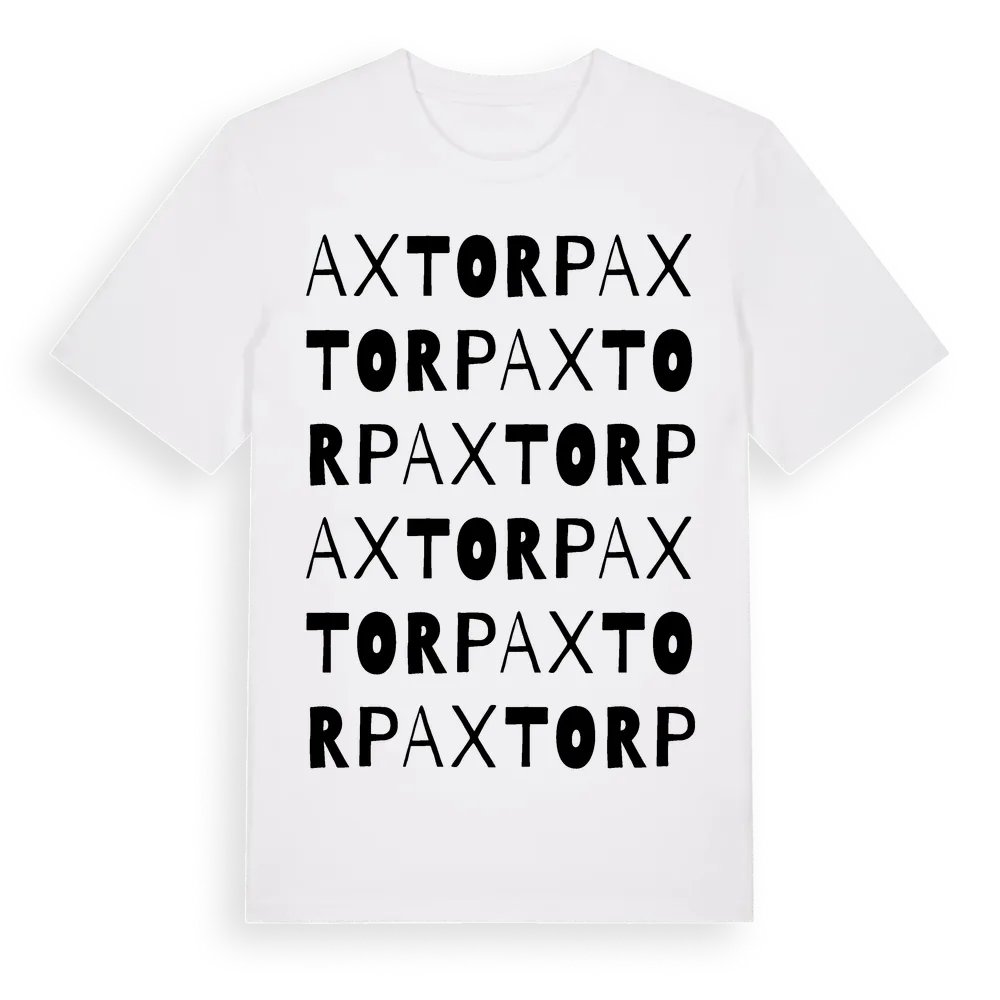 Axtorp ordlek t-shirt är inspirerad av Axtorp i Uppsala län, Sverige. Tröjan är designad för dig som har en speciell koppling till platsen – oavsett om du bor här, har rötterna här eller bara älskar Axtorp.