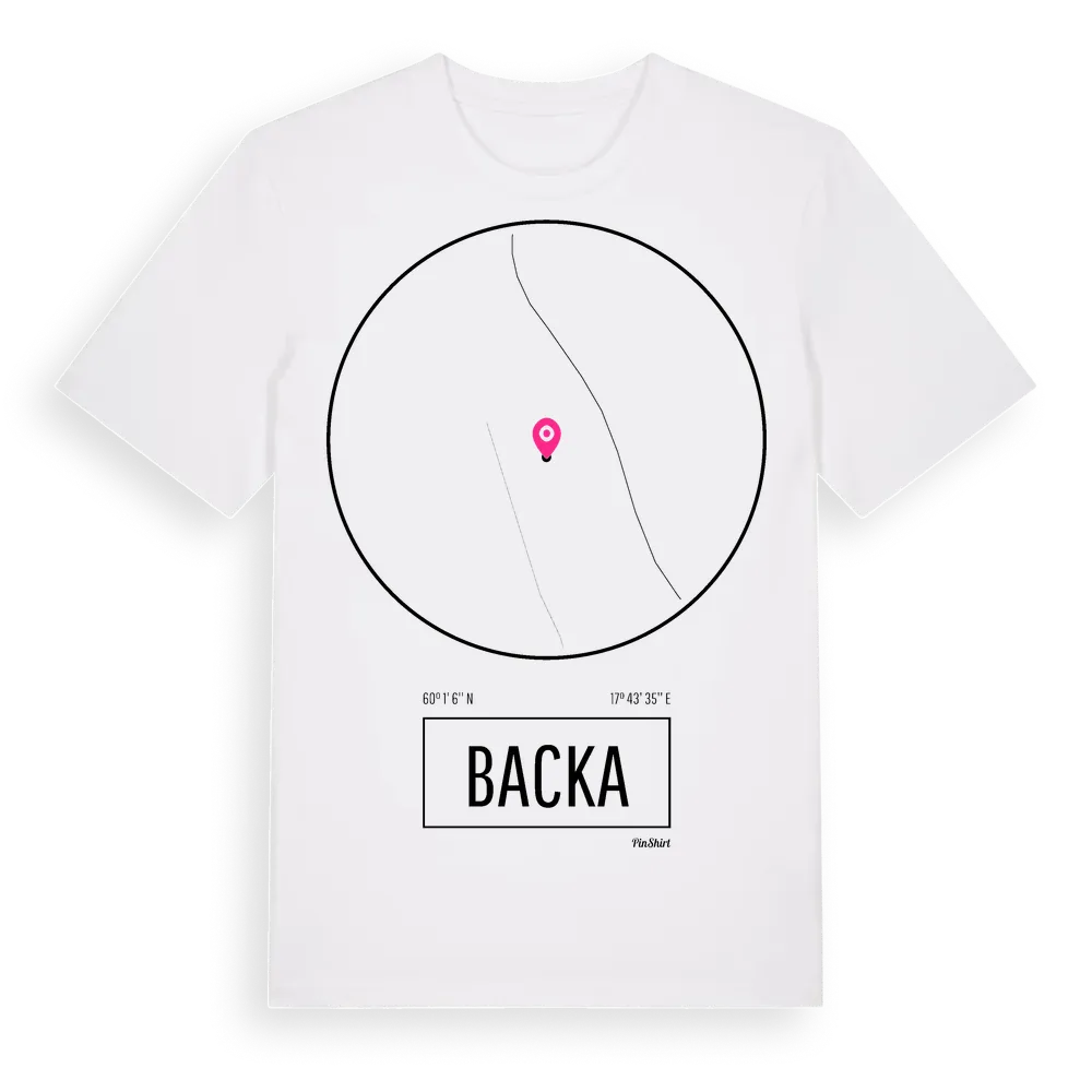 Backa t-shirt är inspirerad av byn Backa i Uppsala län, Sverige. Tröjan är designad för dig som har en speciell koppling till platsen – oavsett om du bor här, har rötterna här eller bara älskar Backa.