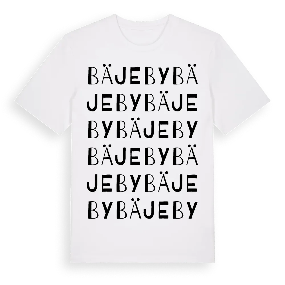 Bäjeby ordlek t-shirt är inspirerad av byn Bäjeby i Uppsala län, Sverige. Tröjan är designad för dig som har en speciell koppling till platsen – oavsett om du bor här, har rötterna här eller bara älskar Bäjeby.