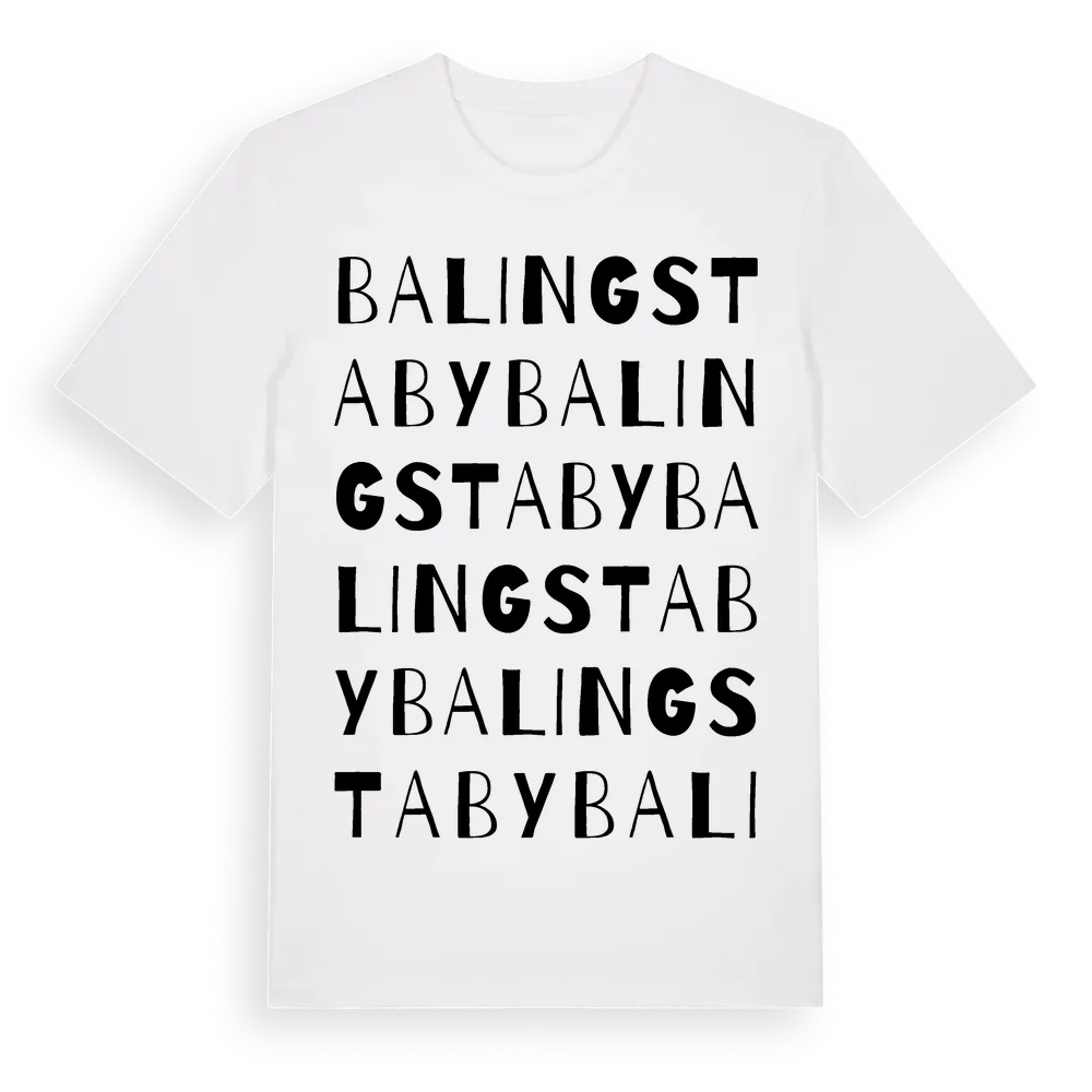 Balingstaby ordlek t-shirt är inspirerad av byn Balingstaby i Uppsala län, Sverige. Tröjan är designad för dig som har en speciell koppling till platsen – oavsett om du bor här, har rötterna här eller bara älskar Balingstaby.