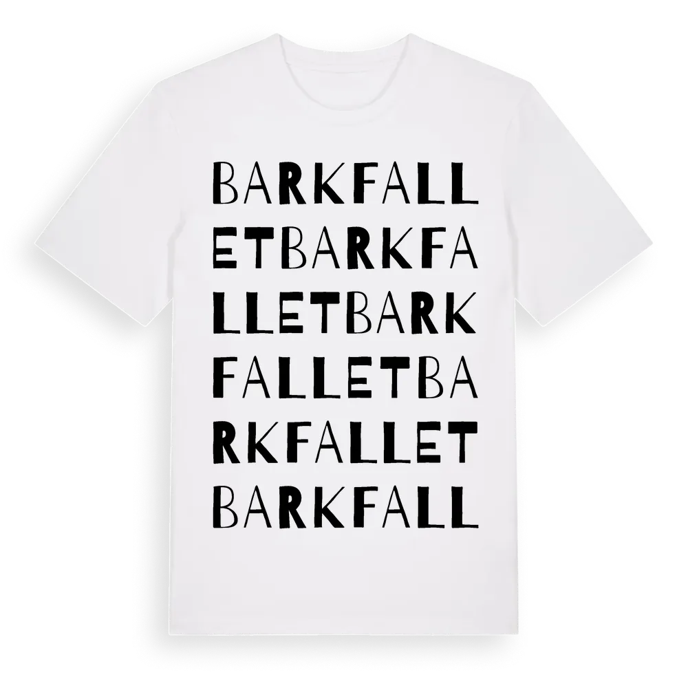 Barkfallet ordlek t-shirt är inspirerad av Barkfallet i Uppsala län, Sverige. Tröjan är designad för dig som har en speciell koppling till platsen – oavsett om du bor här, har rötterna här eller bara älskar Barkfallet.