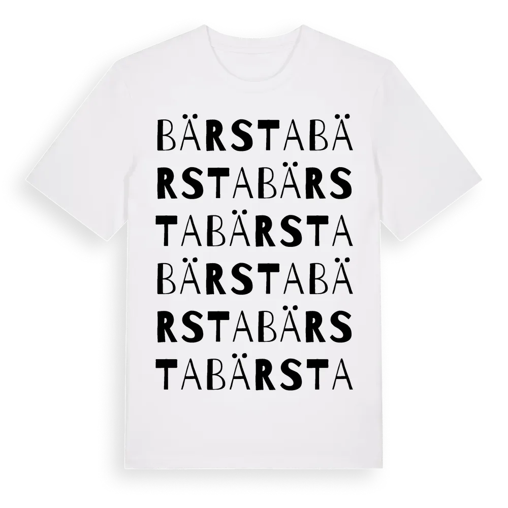 Bärsta ordlek t-shirt är inspirerad av byn Bärsta i Uppsala län, Sverige. Tröjan är designad för dig som har en speciell koppling till platsen – oavsett om du bor här, har rötterna här eller bara älskar Bärsta.