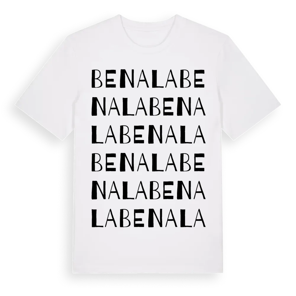 Benala ordlek t-shirt är inspirerad av byn Benala i Uppsala län, Sverige. Tröjan är designad för dig som har en speciell koppling till platsen – oavsett om du bor här, har rötterna här eller bara älskar Benala.