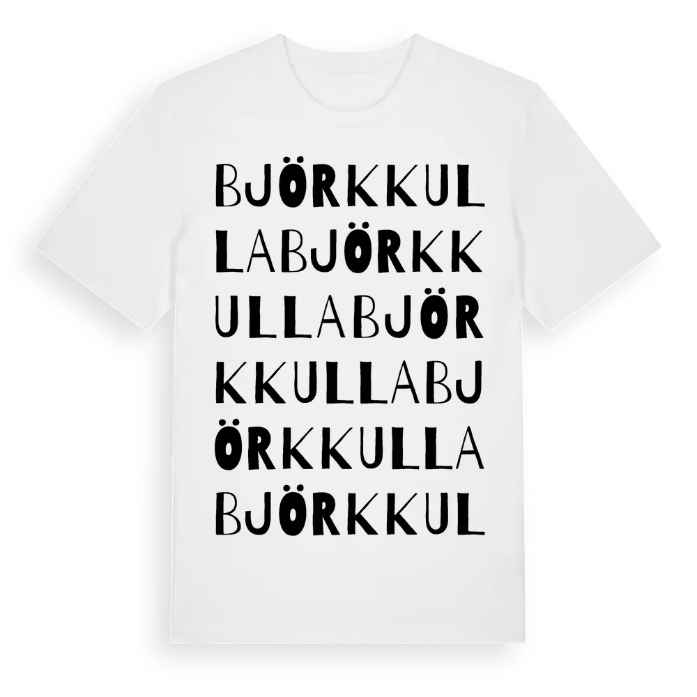 Björkkulla ordlek t-shirt är inspirerad av Björkkulla i Uppsala län, Sverige. Tröjan är designad för dig som har en speciell koppling till platsen – oavsett om du bor här, har rötterna här eller bara älskar Björkkulla.