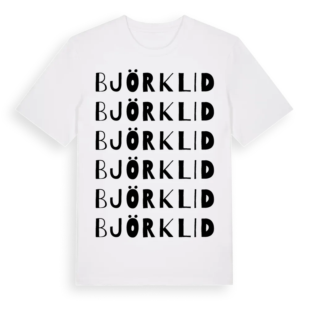 Björklid ordlek t-shirt är inspirerad av Björklid i Uppsala län, Sverige. Tröjan är designad för dig som har en speciell koppling till platsen – oavsett om du bor här, har rötterna här eller bara älskar Björklid.