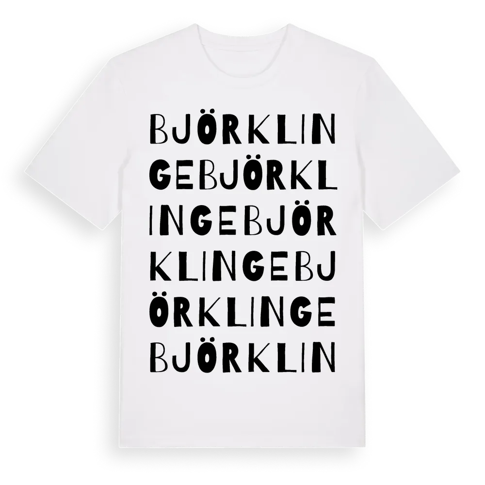 Björklinge ordlek t-shirt är inspirerad av byn Björklinge i Uppsala län, Sverige. Tröjan är designad för dig som har en speciell koppling till platsen – oavsett om du bor här, har rötterna här eller bara älskar Björklinge.
