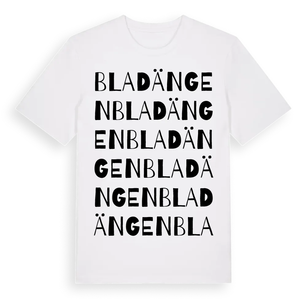 Bladängen ordlek t-shirt är inspirerad av byn Bladängen i Uppsala län, Sverige. Tröjan är designad för dig som har en speciell koppling till platsen – oavsett om du bor här, har rötterna här eller bara älskar Bladängen.