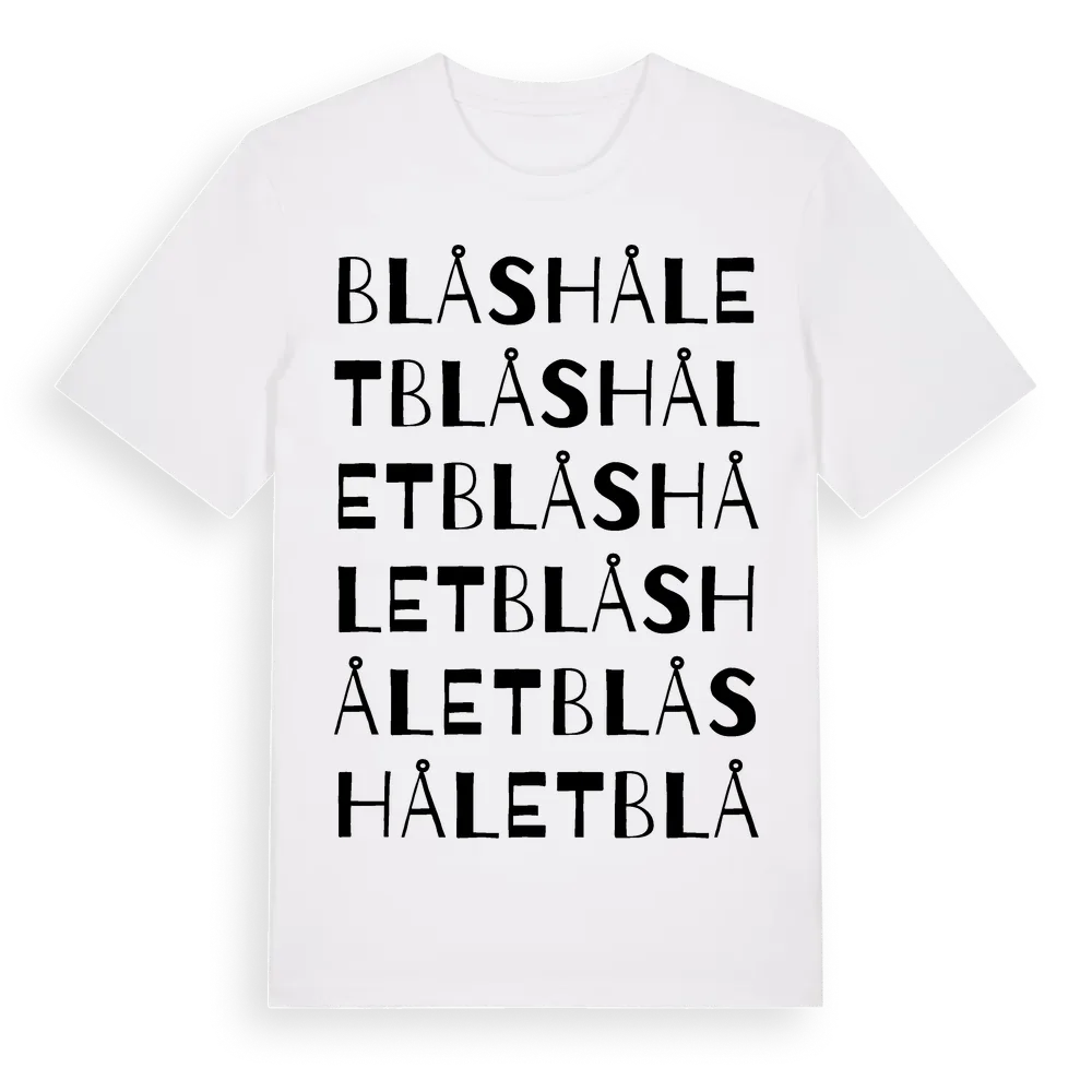 Blåshålet ordlek t-shirt är inspirerad av Blåshålet i Uppsala län, Sverige. Tröjan är designad för dig som har en speciell koppling till platsen – oavsett om du bor här, har rötterna här eller bara älskar Blåshålet.