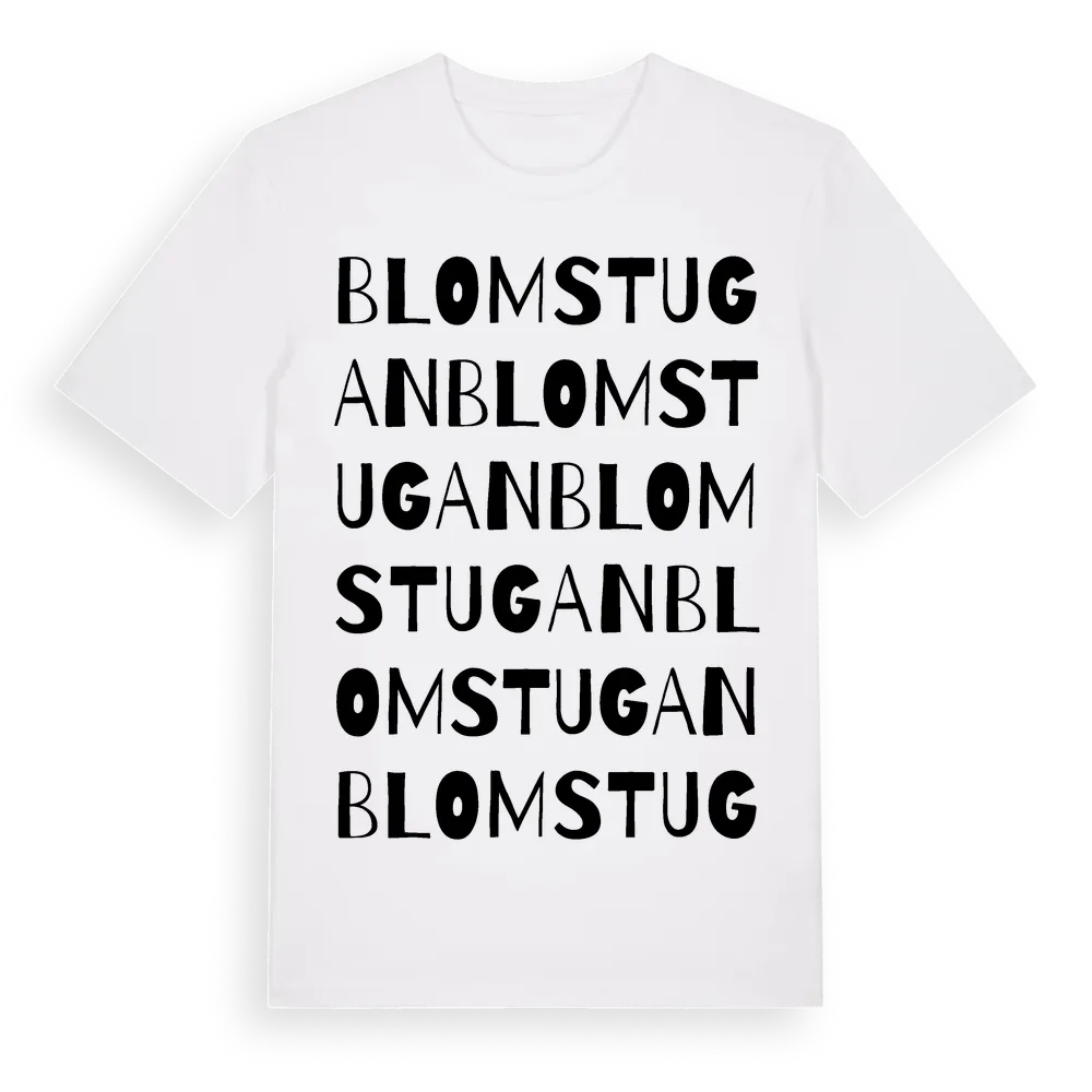 Blomstugan ordlek t-shirt är inspirerad av Blomstugan i Uppsala län, Sverige. Tröjan är designad för dig som har en speciell koppling till platsen – oavsett om du bor här, har rötterna här eller bara älskar Blomstugan.