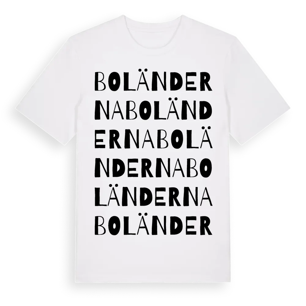 En ordlek byggd på Boländernas namn. Subtilt och klurig – ett motiv som bara de som verkligen känner platsen fullt ut förstår. Premium bomull, unisex – från stadsdelen Boländerna i Uppsala län.
