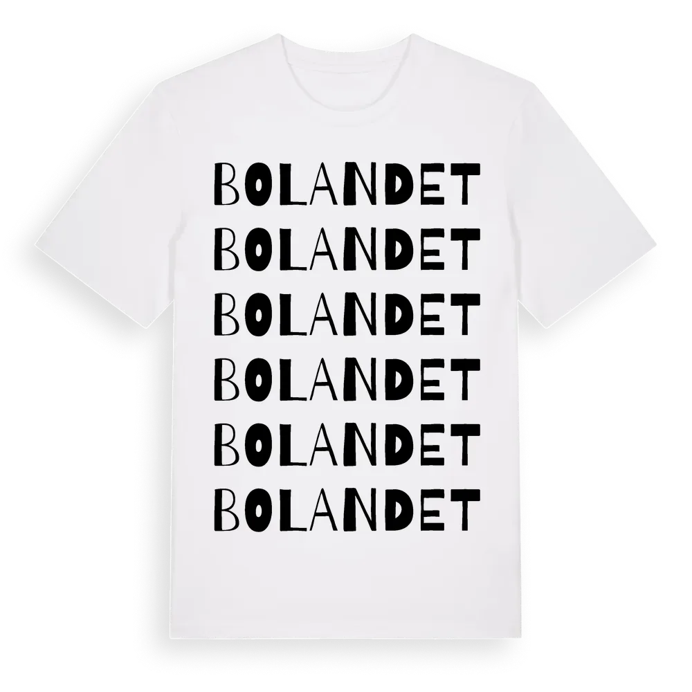 En ordlek byggd på Bolandets namn. Subtilt och klurig – ett motiv som bara de som verkligen känner platsen fullt ut förstår. Premium bomull, unisex – från Bolandet i Uppsala län.