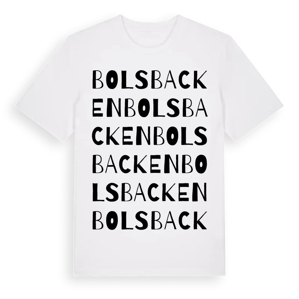 En ordlek byggd på Bolsbackens namn. Subtilt och klurig – ett motiv som bara de som verkligen känner platsen fullt ut förstår. Premium bomull, unisex – från Bolsbacken i Uppsala län.