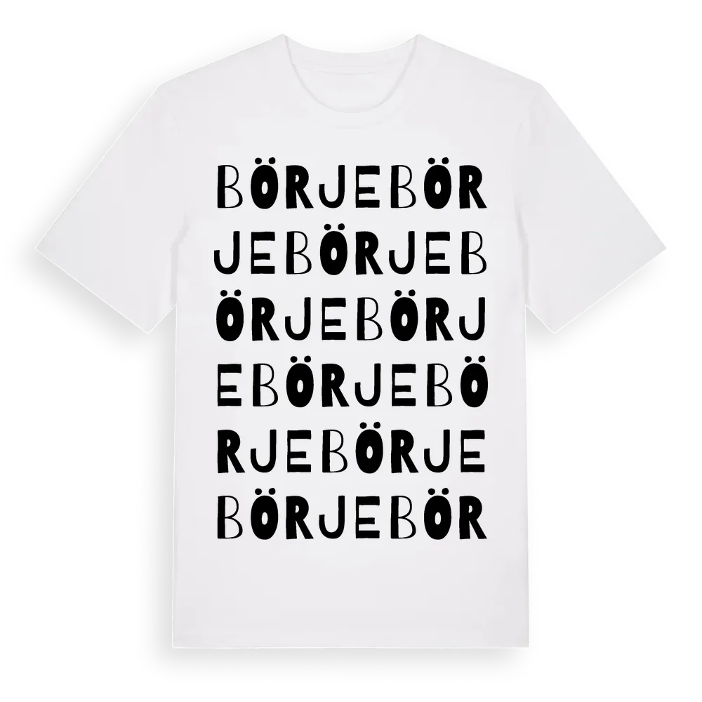 Börje ordlek t-shirt är inspirerad av byn Börje i Uppsala län, Sverige. Tröjan är designad för dig som har en speciell koppling till platsen – oavsett om du bor här, har rötterna här eller bara älskar Börje.