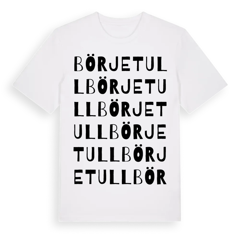 Börjetull ordlek t-shirt är inspirerad av stadsdelen Börjetull i Uppsala län, Sverige. Tröjan är designad för dig som har en speciell koppling till platsen – oavsett om du bor här, har rötterna här eller bara älskar Börjetull.