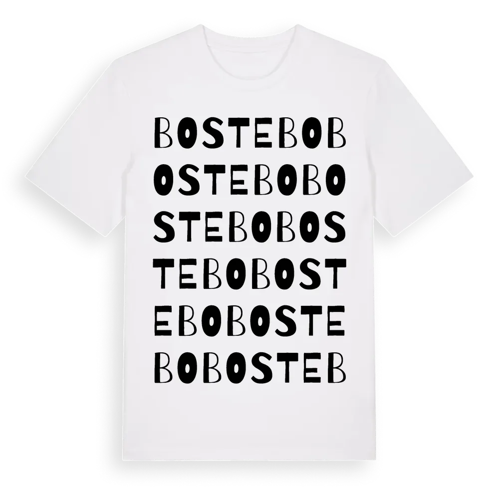 Bostebo ordlek t-shirt är inspirerad av Bostebo i Uppsala län, Sverige. Tröjan är designad för dig som har en speciell koppling till platsen – oavsett om du bor här, har rötterna här eller bara älskar Bostebo.
