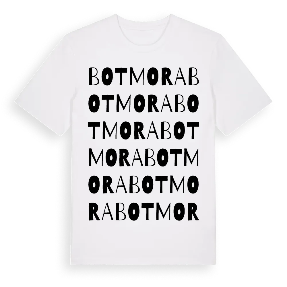 Botmora ordlek t-shirt är inspirerad av Botmora i Uppsala län, Sverige. Tröjan är designad för dig som har en speciell koppling till platsen – oavsett om du bor här, har rötterna här eller bara älskar Botmora.