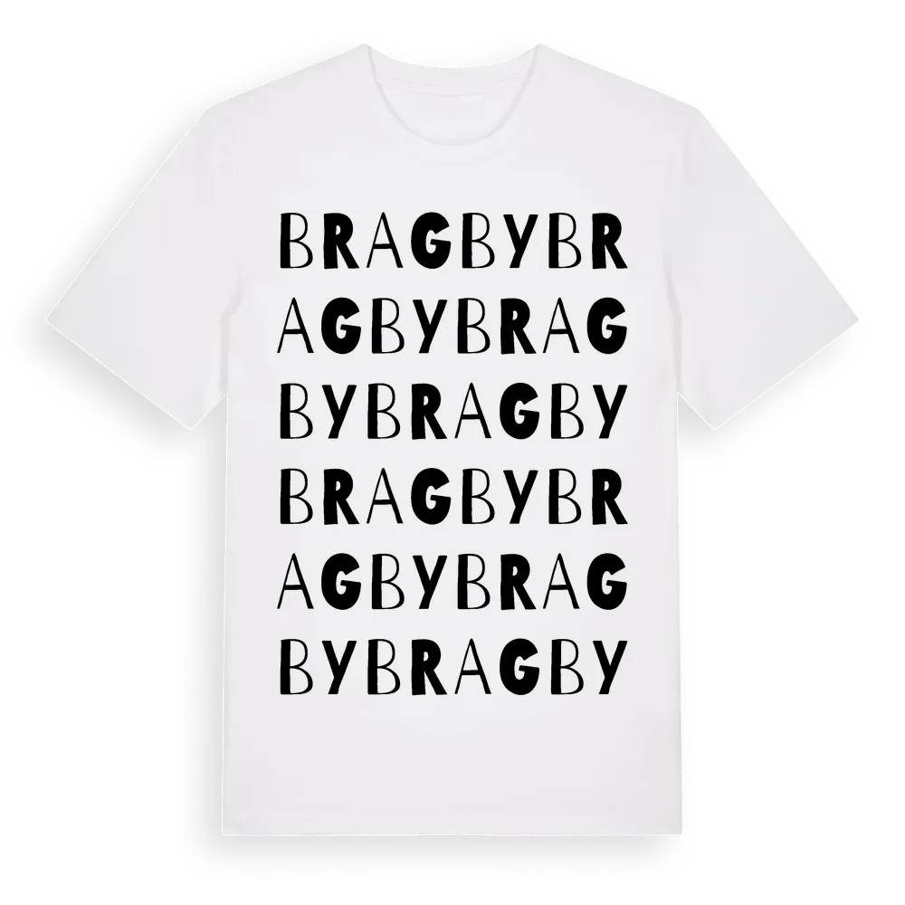 En ordlek byggd på Bragbys namn. Subtilt och klurig – ett motiv som bara de som verkligen känner platsen fullt ut förstår. Premium bomull, unisex – från byn Bragby i Uppsala län.