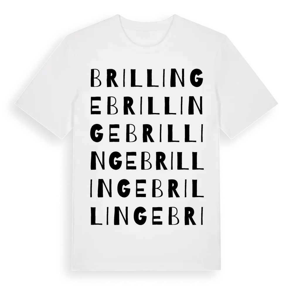 En ordlek byggd på Brillinges namn. Subtilt och klurig – ett motiv som bara de som verkligen känner platsen fullt ut förstår. Premium bomull, unisex – från stadsdelen Brillinge i Uppsala län.