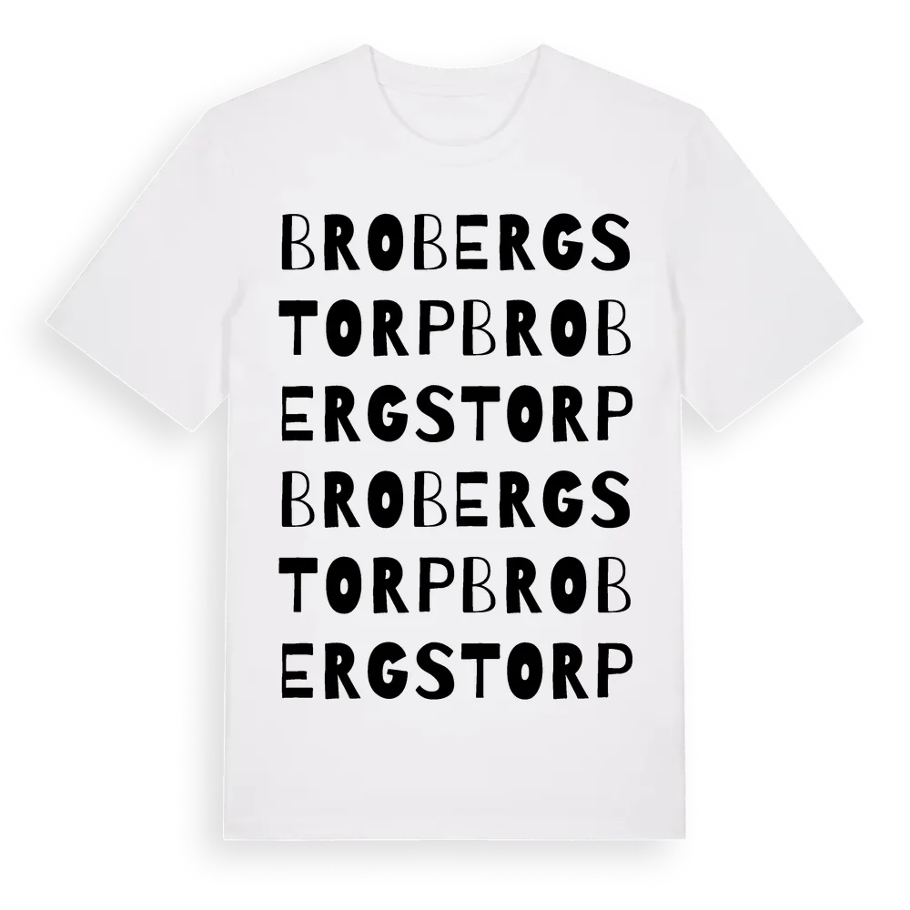 Brobergstorp ordlek t-shirt är inspirerad av Brobergstorp i Uppsala län, Sverige. Tröjan är designad för dig som har en speciell koppling till platsen – oavsett om du bor här, har rötterna här eller bara älskar Brobergstorp.