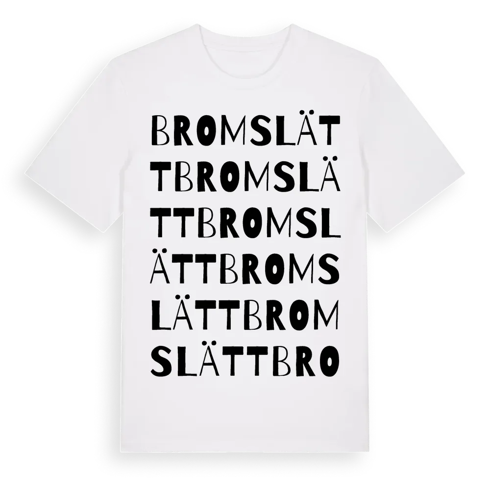 Bromslätt ordlek t-shirt är inspirerad av Bromslätt i Uppsala län, Sverige. Tröjan är designad för dig som har en speciell koppling till platsen – oavsett om du bor här, har rötterna här eller bara älskar Bromslätt.