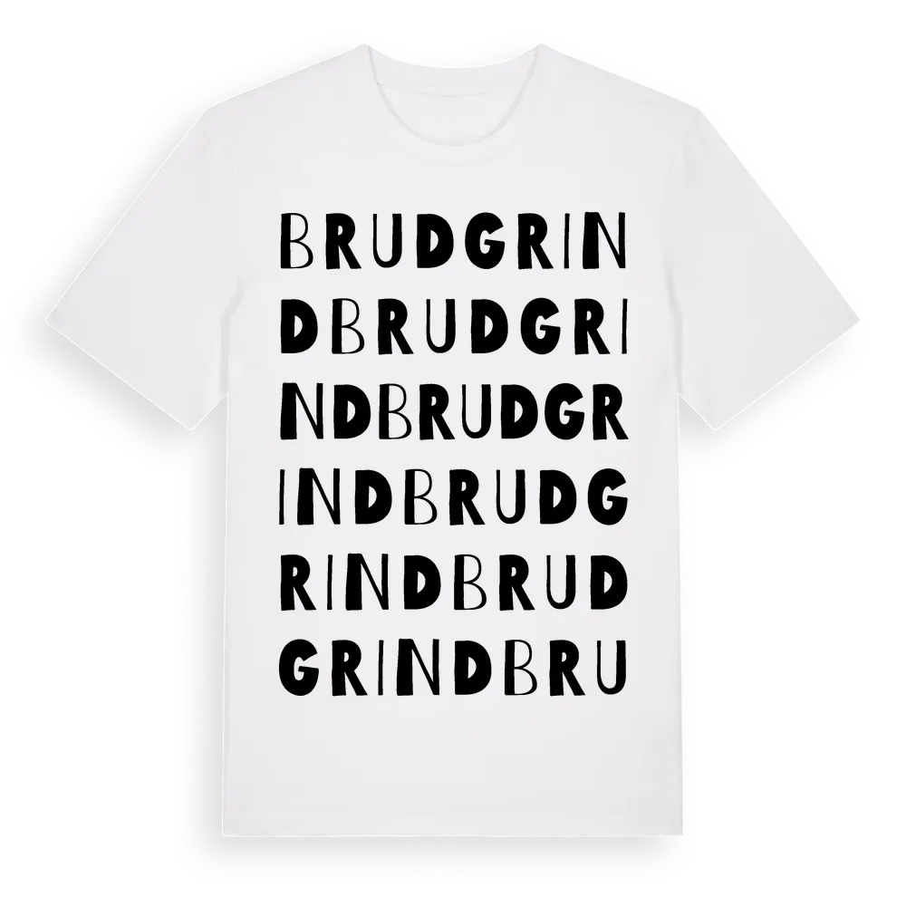 Brudgrind ordlek t-shirt är inspirerad av Brudgrind i Uppsala län, Sverige. Tröjan är designad för dig som har en speciell koppling till platsen – oavsett om du bor här, har rötterna här eller bara älskar Brudgrind.