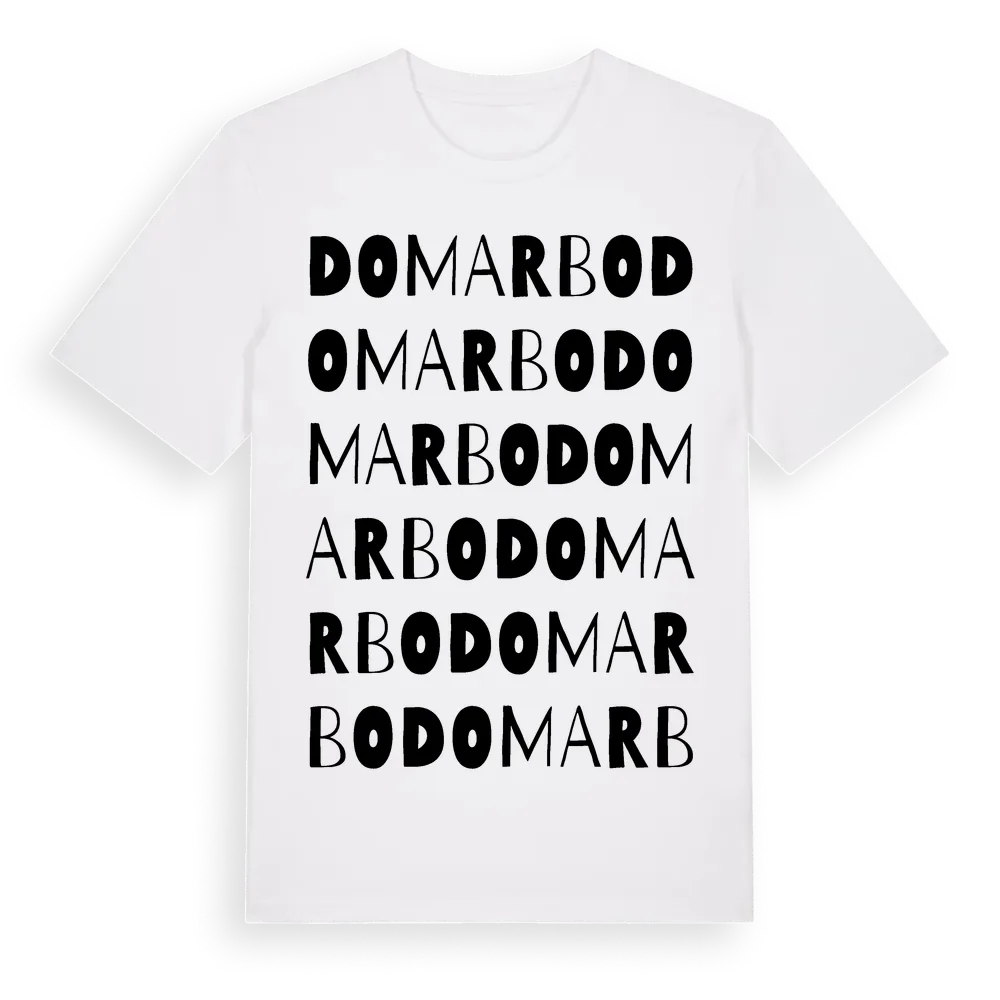 Domarbo ordlek t-shirt är inspirerad av Domarbo i Uppsala län, Sverige. Tröjan är designad för dig som har en speciell koppling till platsen – oavsett om du bor här, har rötterna här eller bara älskar Domarbo.