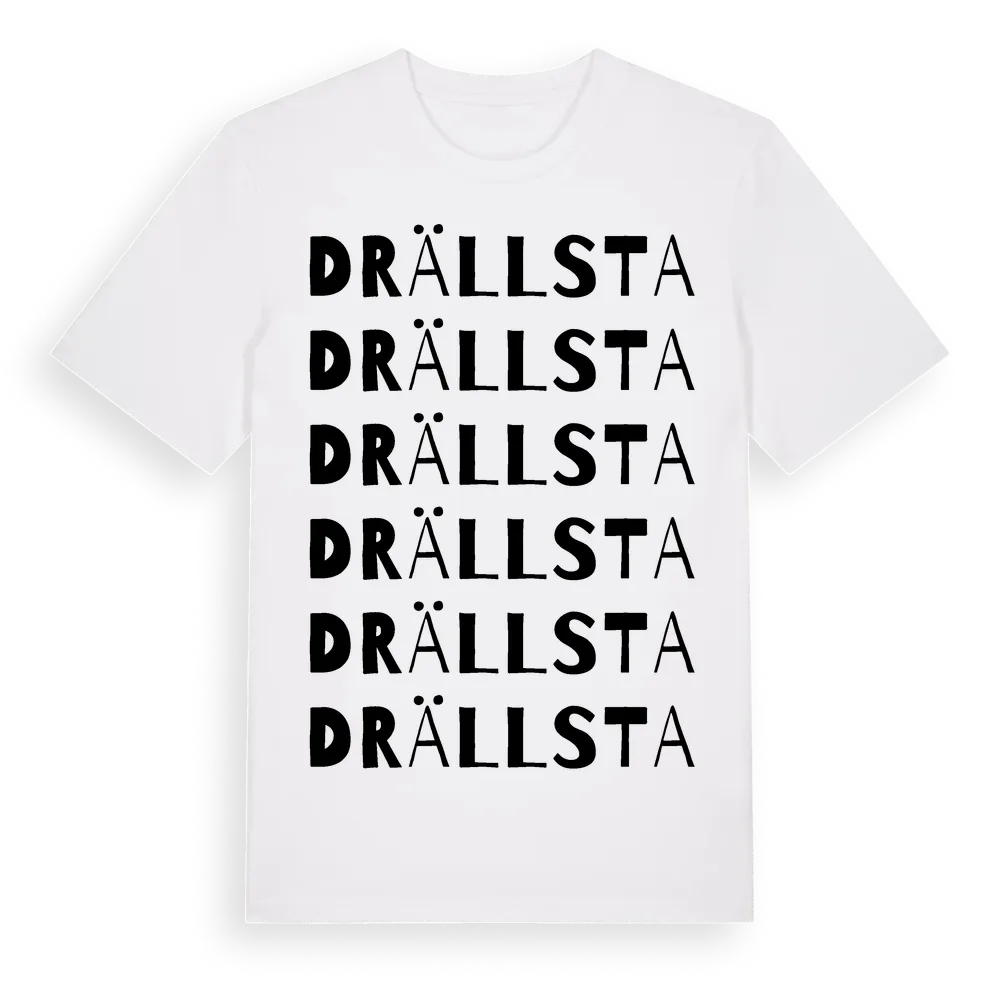 Drällsta ordlek t-shirt är inspirerad av byn Drällsta i Uppsala län, Sverige. Tröjan är designad för dig som har en speciell koppling till platsen – oavsett om du bor här, har rötterna här eller bara älskar Drällsta.