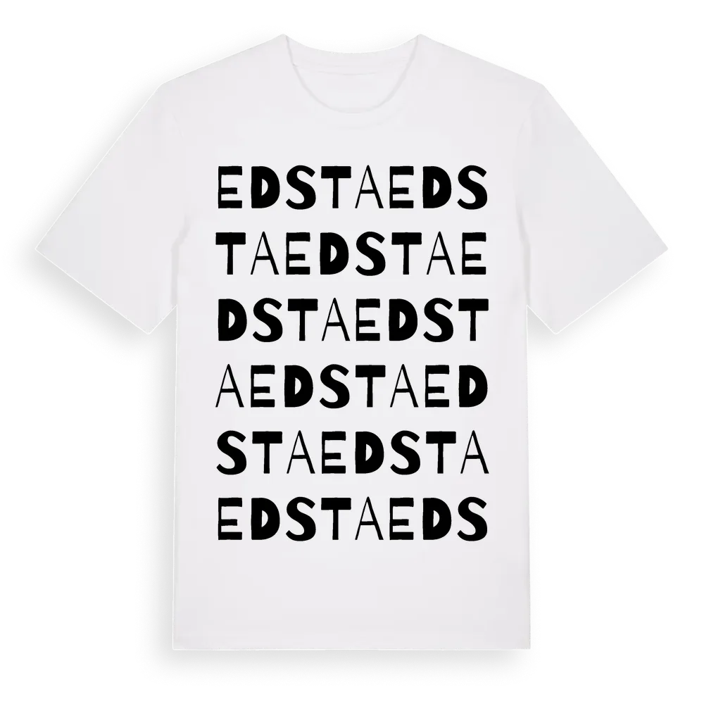 Edsta ordlek t-shirt är inspirerad av byn Edsta i Uppsala län, Sverige. Tröjan är designad för dig som har en speciell koppling till platsen – oavsett om du bor här, har rötterna här eller bara älskar Edsta.