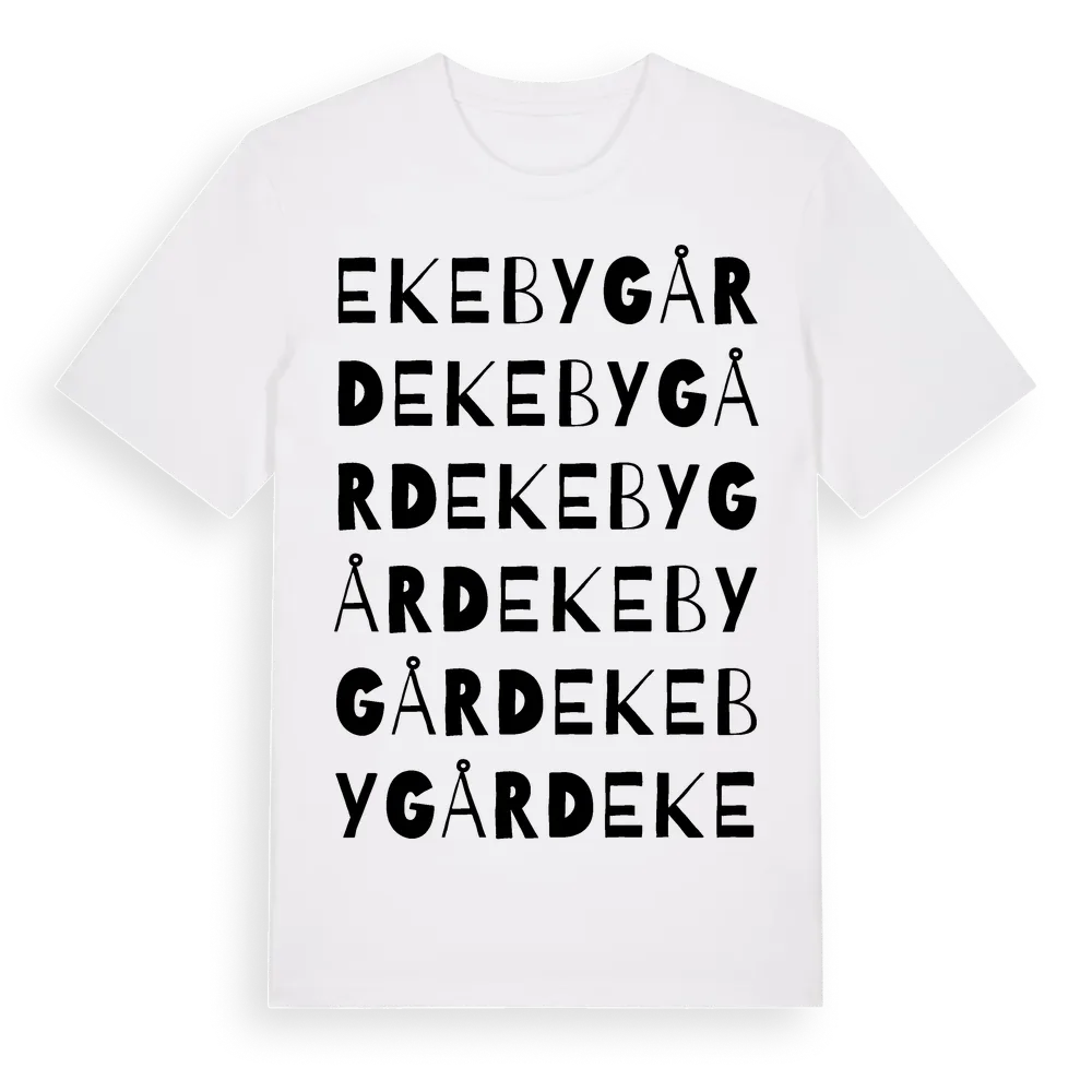 Ekeby Gård ordlek t-shirt är inspirerad av byn Ekeby Gård i Uppsala län, Sverige. Tröjan är designad för dig som har en speciell koppling till platsen – oavsett om du bor här, har rötterna här eller bara älskar Ekeby Gård.