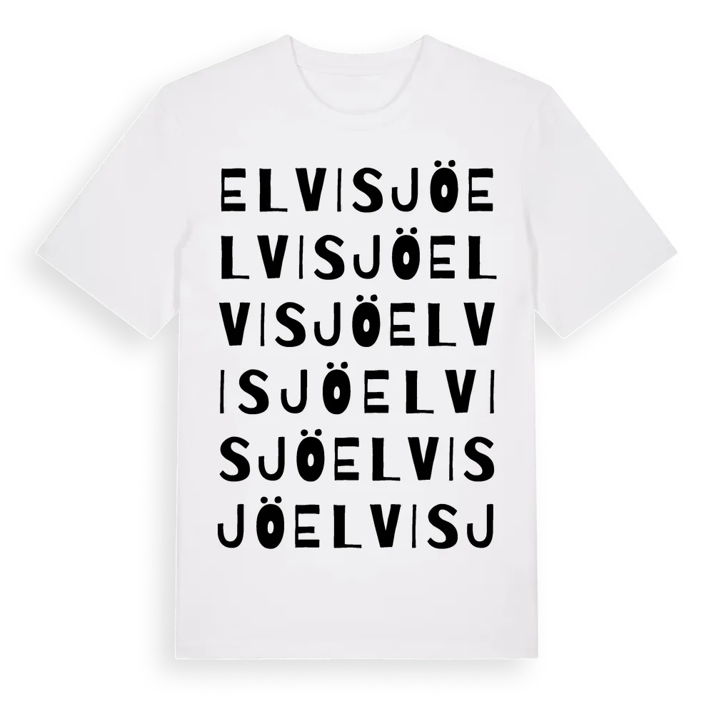 Elvisjö ordlek t-shirt är inspirerad av byn Elvisjö i Uppsala län, Sverige. Tröjan är designad för dig som har en speciell koppling till platsen – oavsett om du bor här, har rötterna här eller bara älskar Elvisjö.