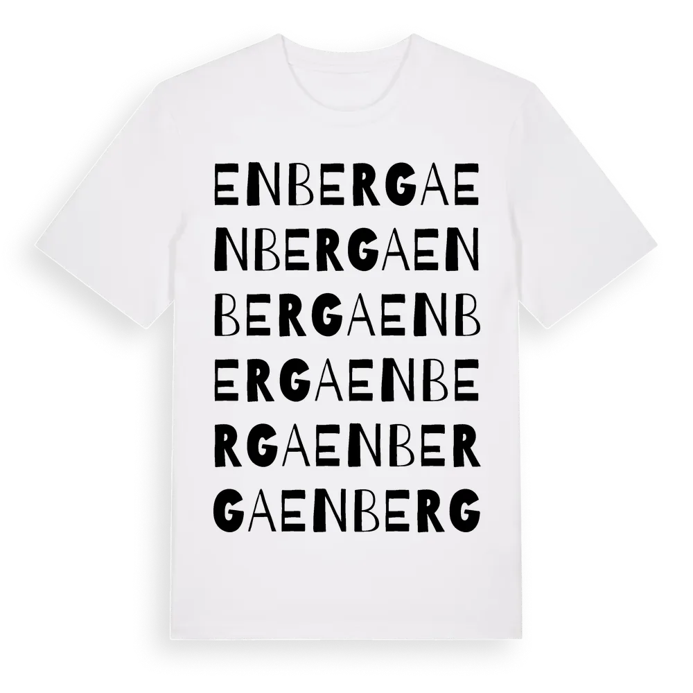 Enberga ordlek t-shirt är inspirerad av Enberga i Uppsala län, Sverige. Tröjan är designad för dig som har en speciell koppling till platsen – oavsett om du bor här, har rötterna här eller bara älskar Enberga.