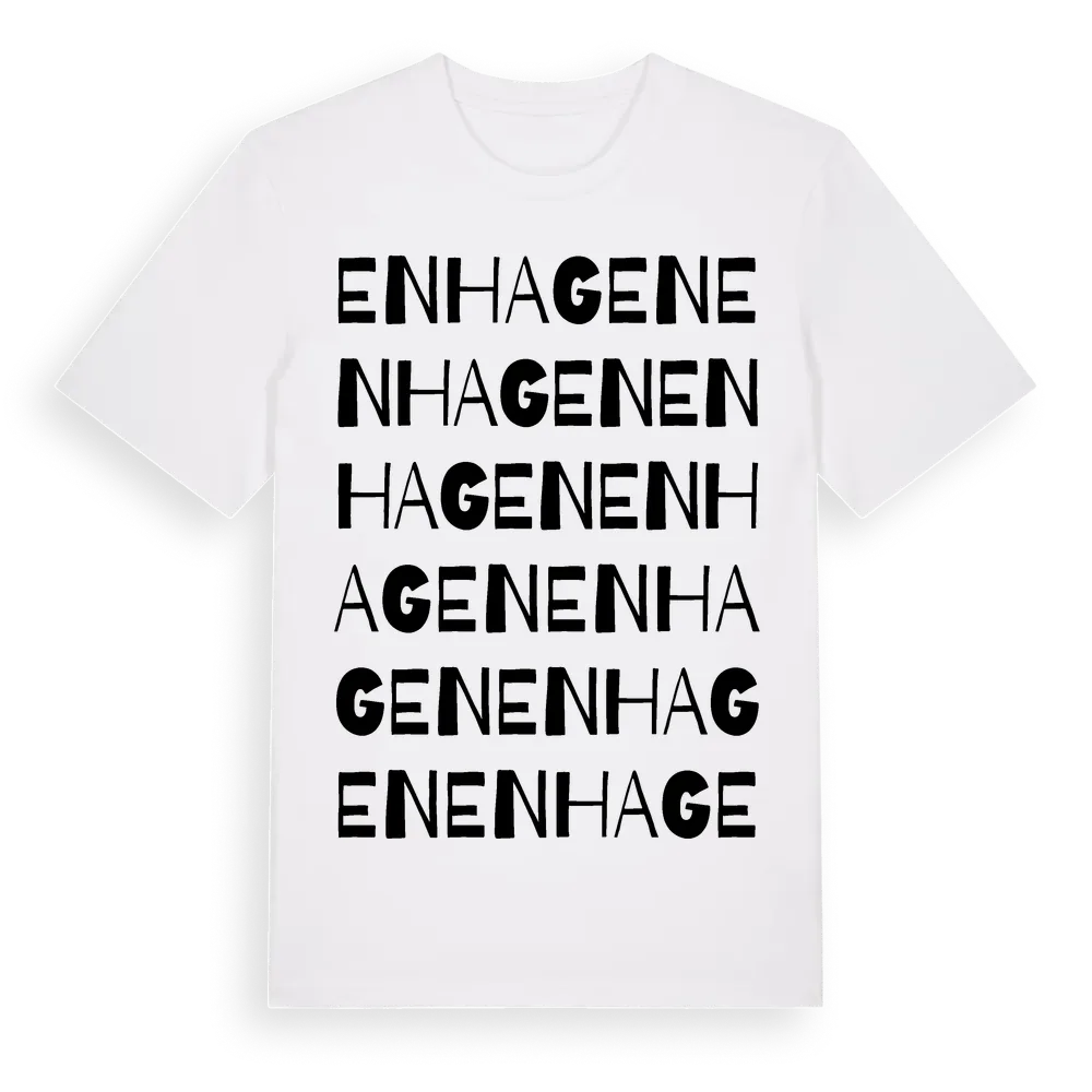 Enhagen ordlek t-shirt är inspirerad av stadsdelen Enhagen i Uppsala län, Sverige. Tröjan är designad för dig som har en speciell koppling till platsen – oavsett om du bor här, har rötterna här eller bara älskar Enhagen.