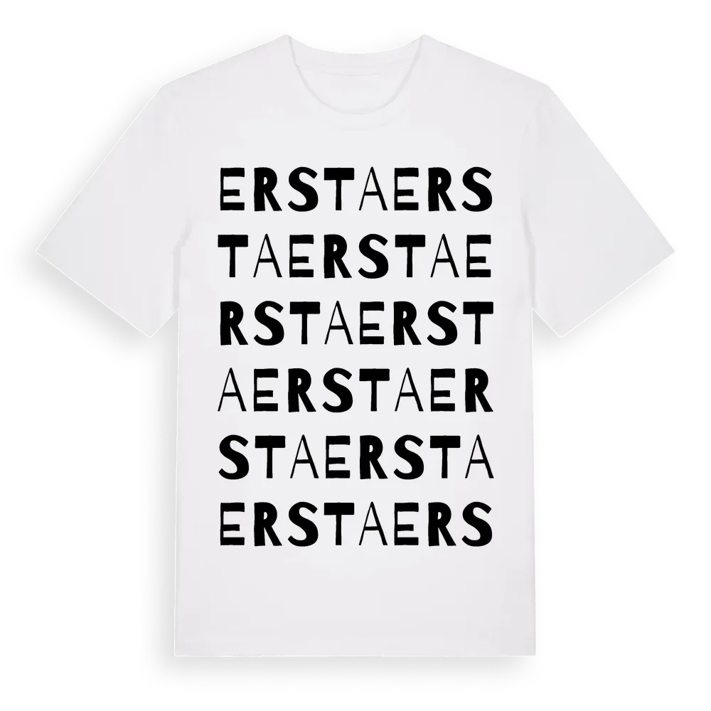Ersta ordlek t-shirt är inspirerad av byn Ersta i Uppsala län, Sverige. Tröjan är designad för dig som har en speciell koppling till platsen – oavsett om du bor här, har rötterna här eller bara älskar Ersta.