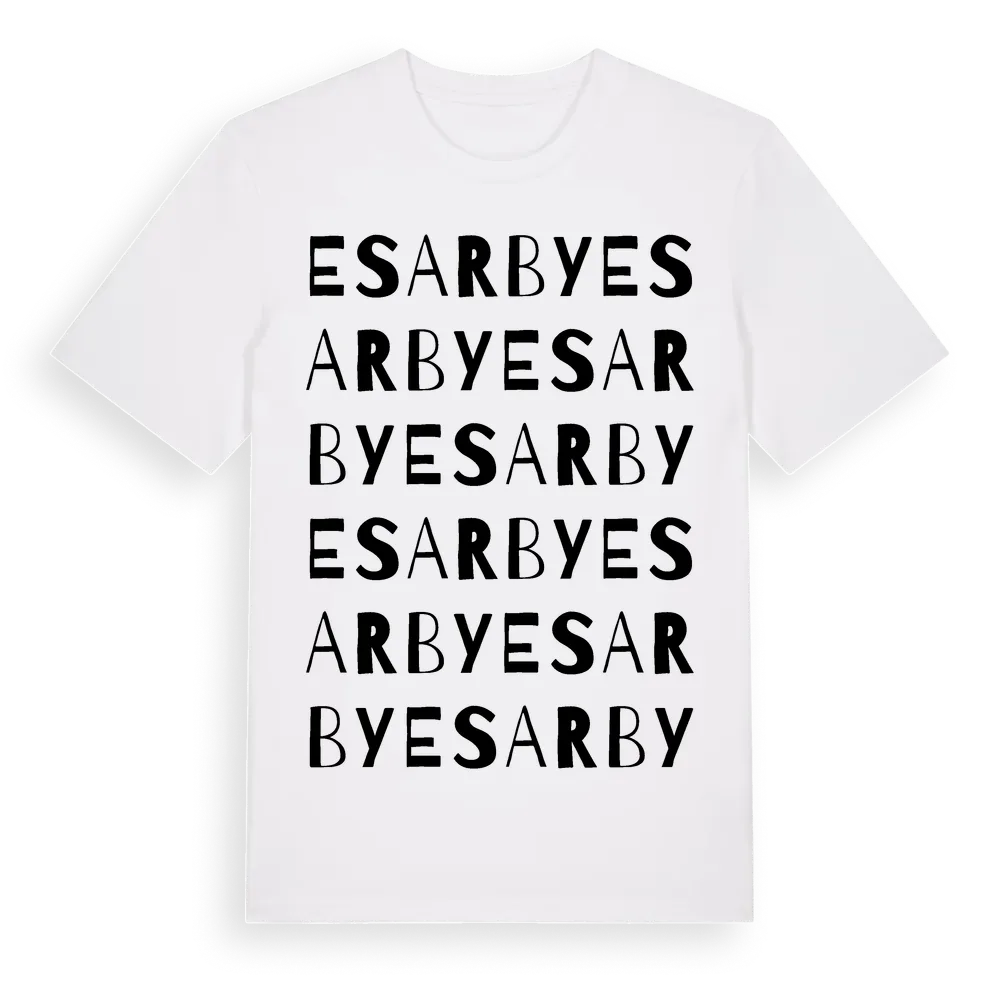 En ordlek byggd på Esarbys namn. Subtilt och klurig – ett motiv som bara de som verkligen känner platsen fullt ut förstår. Premium bomull, unisex – från byn Esarby i Uppsala län.