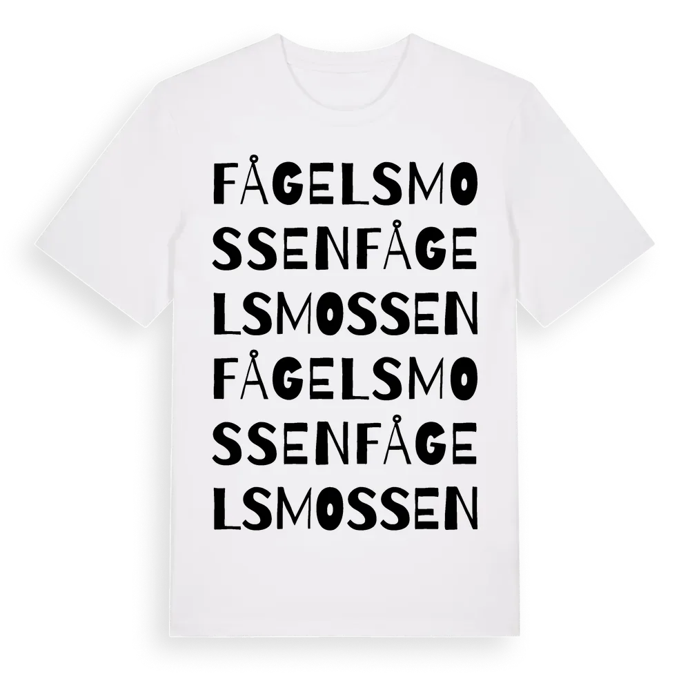 Fågelsmossen ordlek t-shirt är inspirerad av Fågelsmossen i Uppsala län, Sverige. Tröjan är designad för dig som har en speciell koppling till platsen – oavsett om du bor här, har rötterna här eller bara älskar Fågelsmossen.