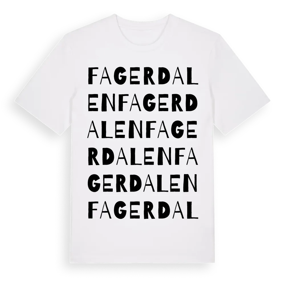 Fagerdalen ordlek t-shirt är inspirerad av Fagerdalen i Uppsala län, Sverige. Tröjan är designad för dig som har en speciell koppling till platsen – oavsett om du bor här, har rötterna här eller bara älskar Fagerdalen.
