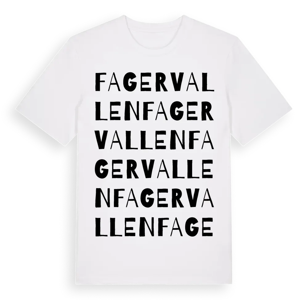Fagervallen ordlek t-shirt är inspirerad av Fagervallen i Uppsala län, Sverige. Tröjan är designad för dig som har en speciell koppling till platsen – oavsett om du bor här, har rötterna här eller bara älskar Fagervallen.