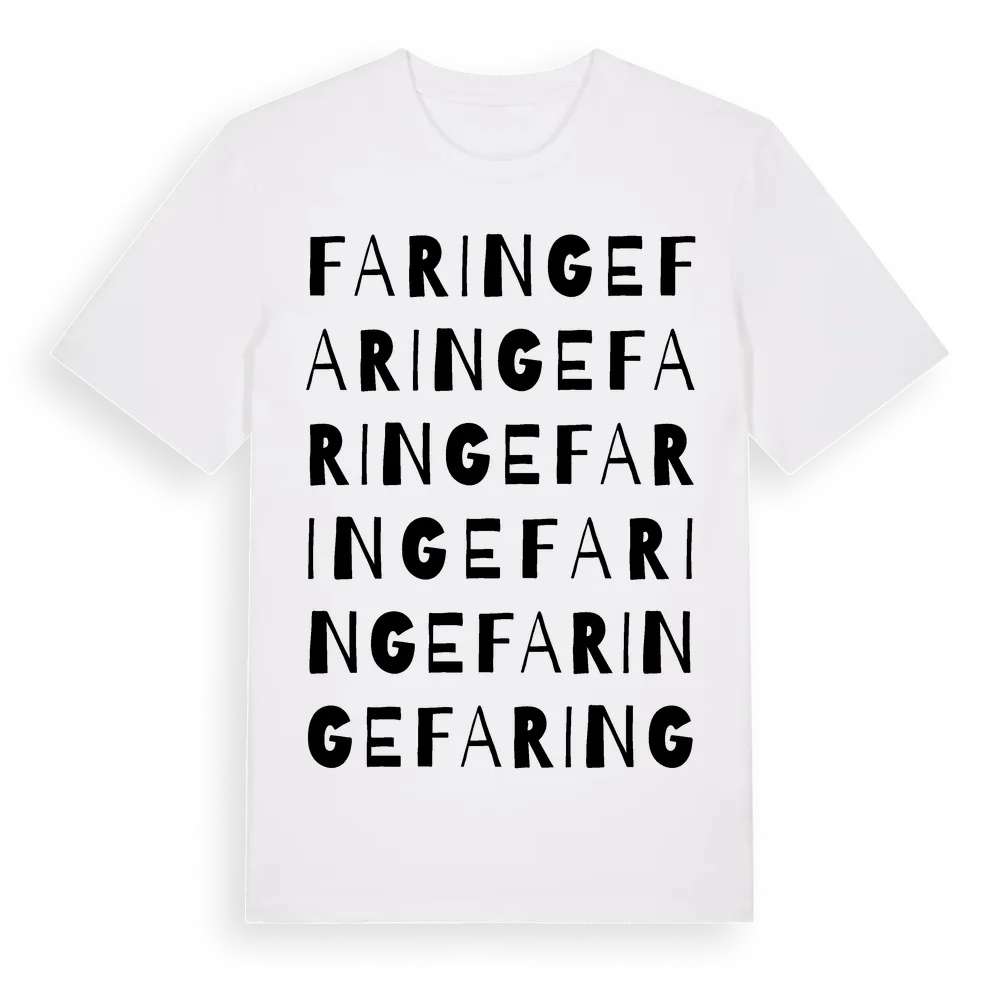Faringe ordlek t-shirt är inspirerad av byn Faringe i Uppsala län, Sverige. Tröjan är designad för dig som har en speciell koppling till platsen – oavsett om du bor här, har rötterna här eller bara älskar Faringe.
