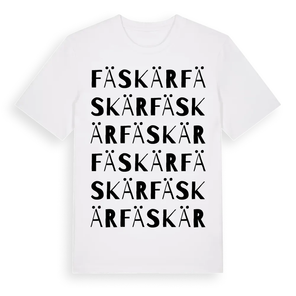 Fäskär ordlek t-shirt är inspirerad av Fäskär i Uppsala län, Sverige. Tröjan är designad för dig som har en speciell koppling till platsen – oavsett om du bor här, har rötterna här eller bara älskar Fäskär.