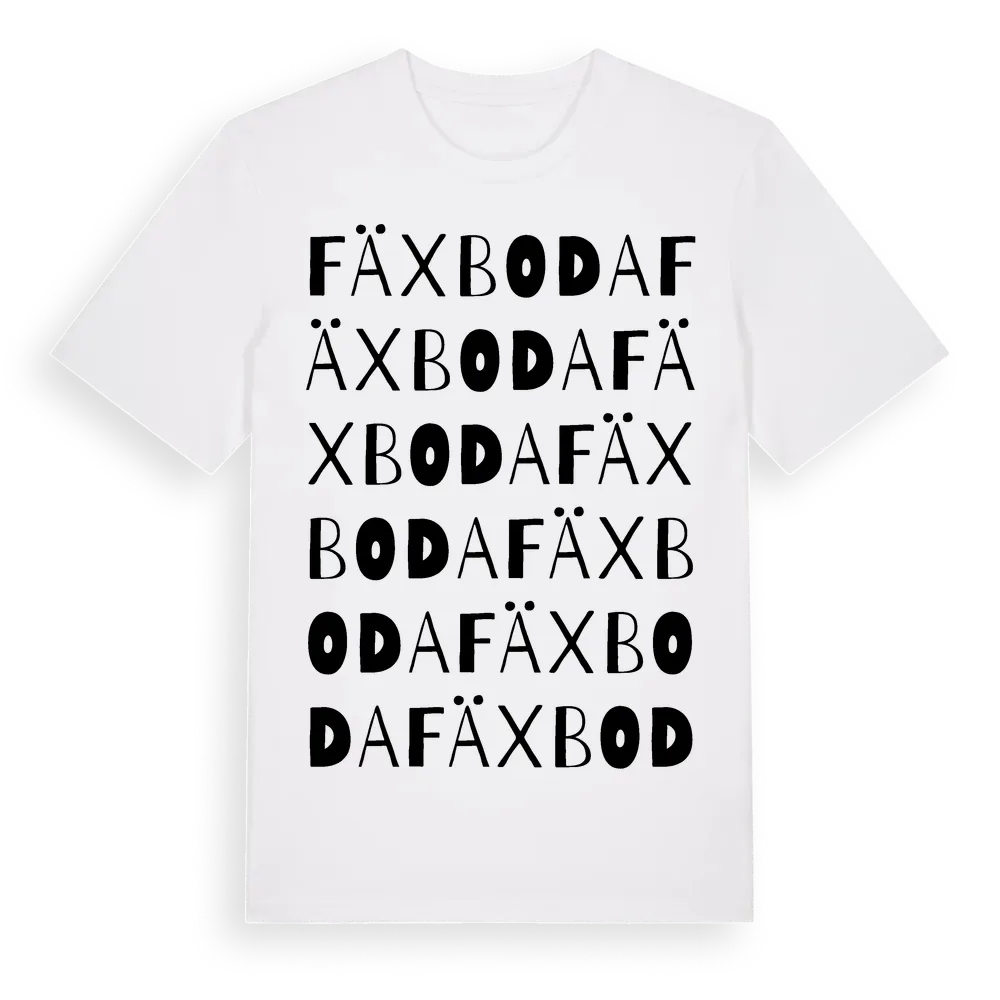 Fäxboda ordlek t-shirt är inspirerad av Fäxboda i Uppsala län, Sverige. Tröjan är designad för dig som har en speciell koppling till platsen – oavsett om du bor här, har rötterna här eller bara älskar Fäxboda.