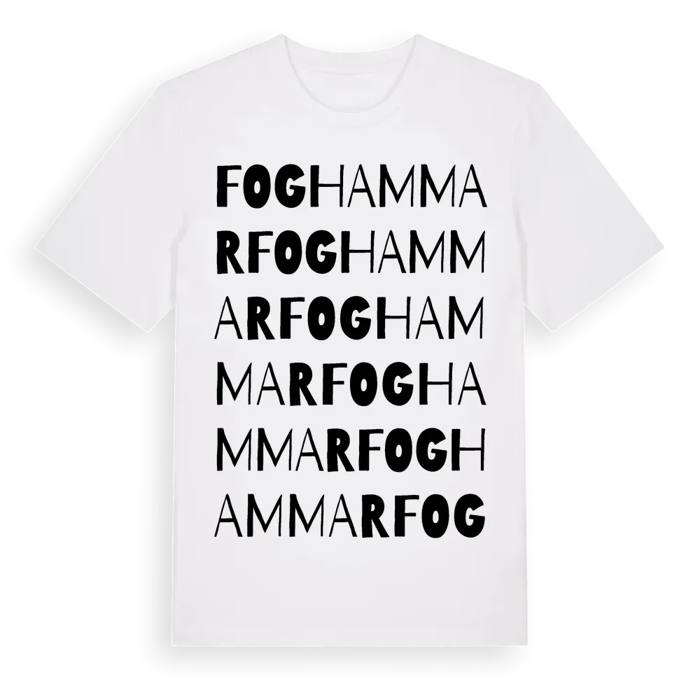 Foghammar ordlek t-shirt är inspirerad av stadsdelen Foghammar i Uppsala län, Sverige. Tröjan är designad för dig som har en speciell koppling till platsen – oavsett om du bor här, har rötterna här eller bara älskar Foghammar.