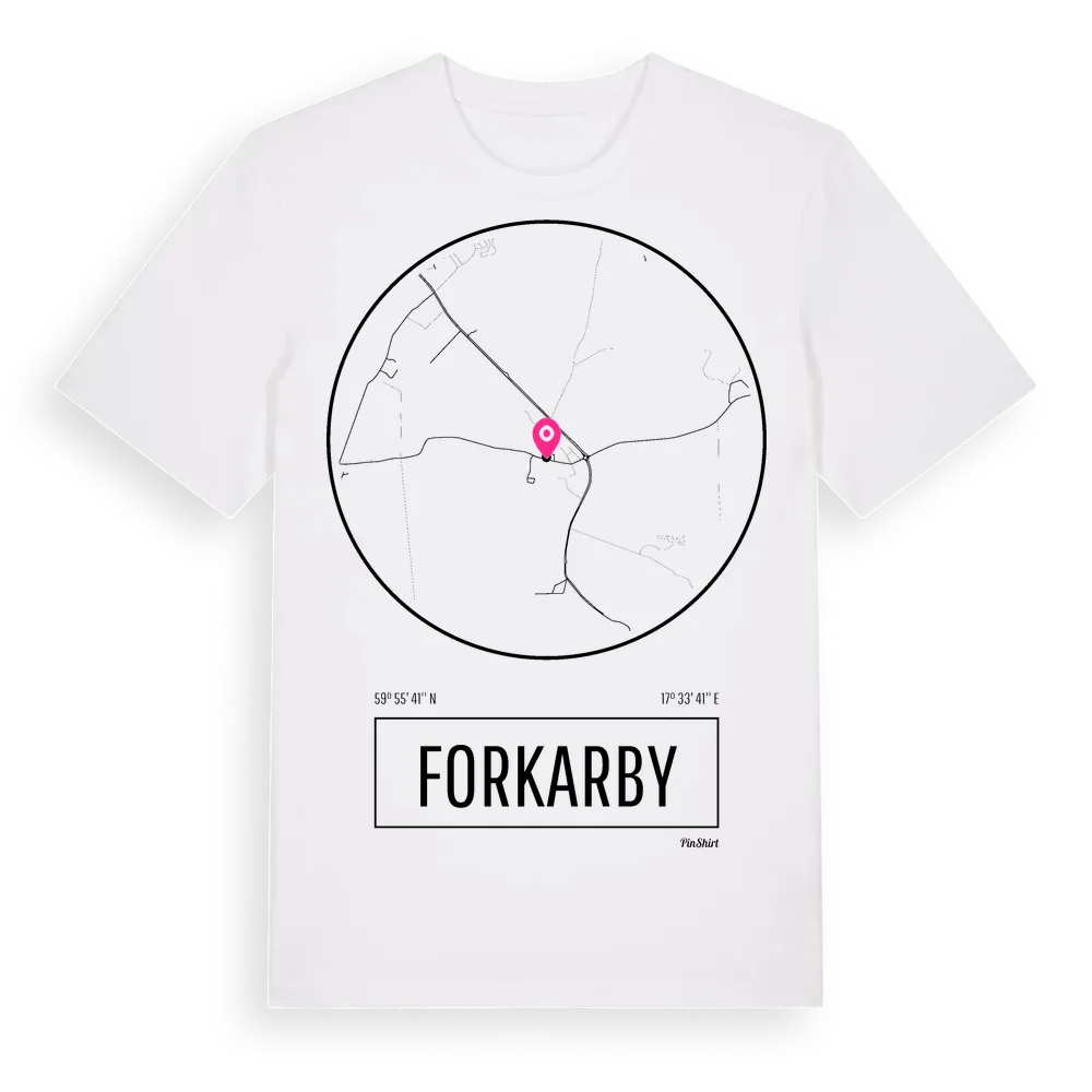 Forkarby t-shirt är inspirerad av byn Forkarby i Uppsala län, Sverige. Tröjan är designad för dig som har en speciell koppling till platsen – oavsett om du bor här, har rötterna här eller bara älskar Forkarby.