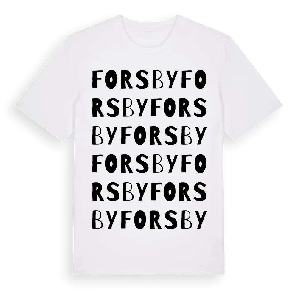 Forsby ordlek t-shirt är inspirerad av byn Forsby i Uppsala län, Sverige. Tröjan är designad för dig som har en speciell koppling till platsen – oavsett om du bor här, har rötterna här eller bara älskar Forsby.