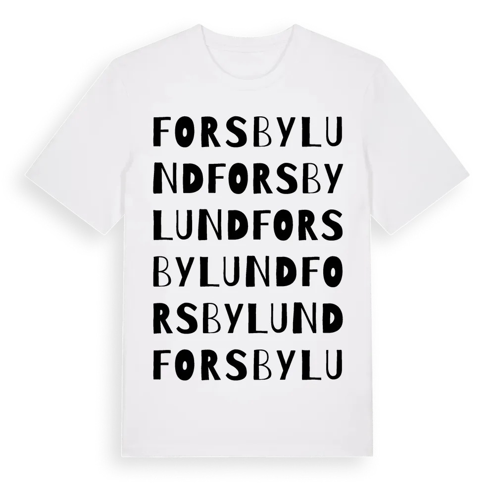 Forsbylund ordlek t-shirt är inspirerad av Forsbylund i Uppsala län, Sverige. Tröjan är designad för dig som har en speciell koppling till platsen – oavsett om du bor här, har rötterna här eller bara älskar Forsbylund.