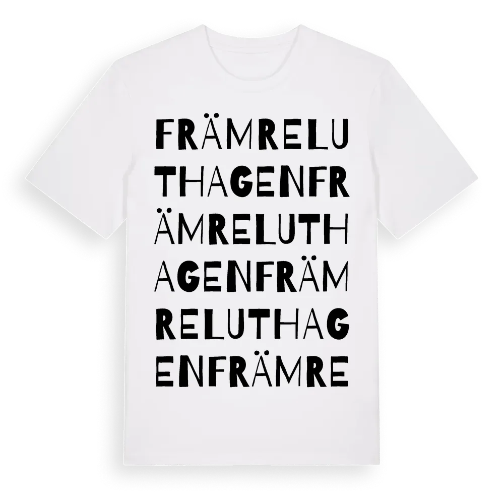 Främre Luthagen ordlek t-shirt är inspirerad av stadsdelen Främre Luthagen i Uppsala län, Sverige. Tröjan är designad för dig som har en speciell koppling till platsen – oavsett om du bor här, har rötterna här eller bara älskar Främre Luthagen.
