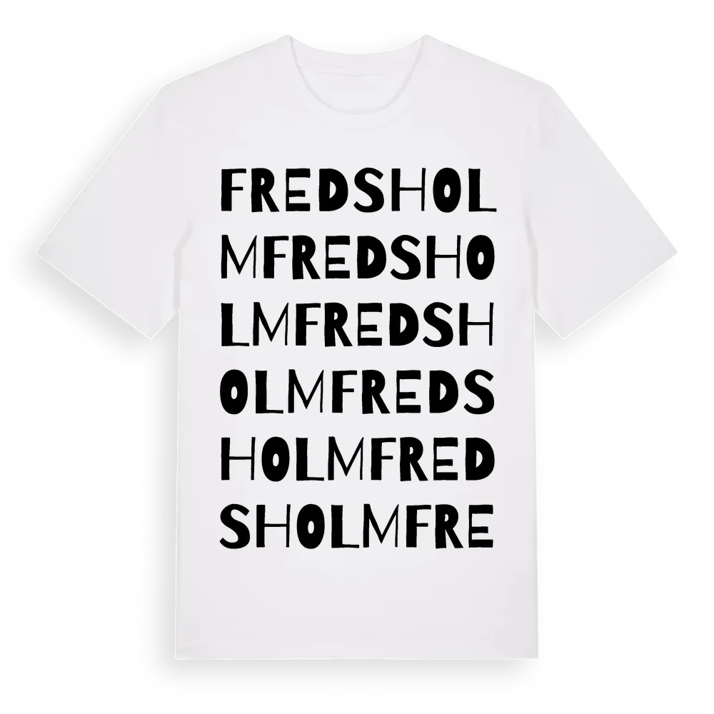 Fredsholm ordlek t-shirt är inspirerad av Fredsholm i Uppsala län, Sverige. Tröjan är designad för dig som har en speciell koppling till platsen – oavsett om du bor här, har rötterna här eller bara älskar Fredsholm.