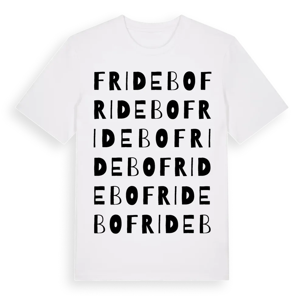 En ordlek byggd på Fridebos namn. Subtilt och klurig – ett motiv som bara de som verkligen känner platsen fullt ut förstår. Premium bomull, unisex – från Fridebo i Uppsala län.